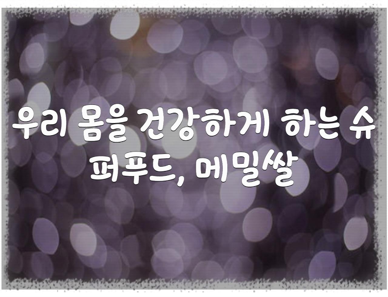 정리드린 내용은 우리 몸을 건강하게 하는 슈퍼푸드, 메밀쌀 입니다. 이해에 도움이 될수있길 바랍니다.