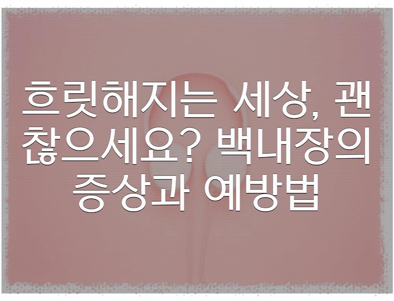 "어제는 선명했던 세상이 오늘은 흐릿하게 보인다면? 혹시 백내장일까요?" 나이가 들면서 누구나 경험하게 되는 시력 저하, 백내장은 조기에 발견하고 치료하지 않으면 심각한 시력 손실까지 초래할 수 있어요. 하지만 걱정하지 마세요~ 오늘은 백내장의 증상과 예방법을 알아보고, 흐릿해지는 세상을 다시 선명하게 되찾는 방법을 찾아보겠습니다. 본격적으로 흐릿해지는 세상, 괜찮으세요? 백내장의 증상과 예방법 관련 필요하신 분께 공유해 드려요.