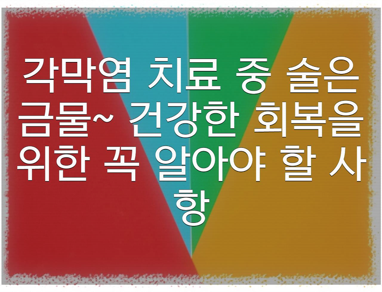 정리드린 글은 각막염 치료 중 술은 금물~ 건강한 회복을 위한 꼭 알아야 할 사항 입니다. 좋은 내용이 되셨길 바랍니다.