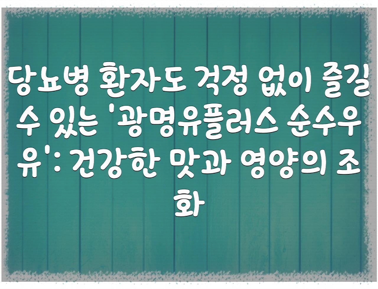 이 글에서는 광명유플러스 순수우유가 당뇨병 환자에게 어떤 도움이 되는지 자세히 알아보고, 건강한 식단 관리에 도움이 되는 팁도 함께 공유하려 합니다.