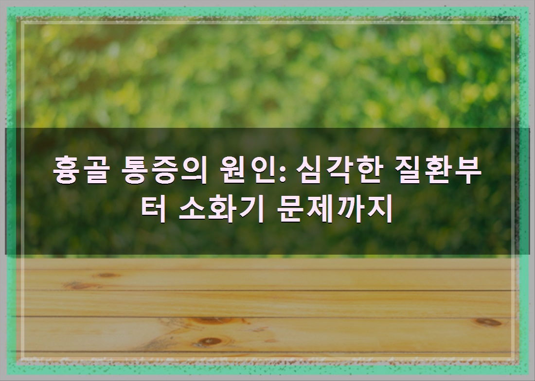 정리드린 글은 흉골 통증의 원인: 심각한 질환부터 소화기 문제까지 입니다. 찾으시는 분들에게 조금이라도 도움이 되었길바랍니다.